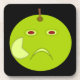 This awesome cork coaster features a cartoon of an evil apple with red eyes and a scowl on its face. The apple has a scar on its cheek where someone has peeled it. This has made the apple very angry and it has set off into the black night to seek revenge.