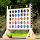 This awesome fast four set features a cartoon of an evil apple with red eyes and a scowl on its face. The apple has a scar on its cheek where someone has peeled it. This has made the apple very angry and it has set off into the black night to seek revenge. There is custom text so you can include a name and a message.