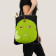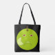 This awesome tote bag features a cartoon of an evil apple with red eyes and a scowl on its face. The apple has a scar on its cheek where someone has peeled it. This has made the apple very angry and it has set off into the black night to seek revenge.
