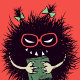 Geek pillow with a fun illustration of an evil bug student who is prepared to go back to school. She has a grin and eyeglasses. Holding her textbook, she's waiting for lessons to start, eager to read. This school design is great for a geek girl.