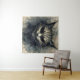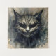 Tapestry features feline watercolor artwork of a sinister looking cat in neutral and dark tones. The wicked cat is reminiscent of the mysterious smiling Cheshire cat from Lewis Caroll's classic masterpiece of children's literature, Alice's Adventures in Wonderland!