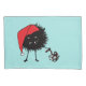 Funny evil Christmas pillowcase with a black cartoon grinning bug unpacking a Christmas present.