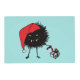 Funny evil Christmas laminated placemat with a black cartoon grinning bug unpacking a Christmas present.