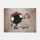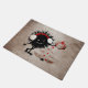 Evil Christmas doormat with a dark textured illustration with an evil black bug who holds a Christmas present with red ribbon. Even in its evilness, it’s as kind as to give presents. Next to the evil character there is a Christmas tree, with red Christmas balls and a red star. This evil character doormat will make a great Christmas gift for someone who loves gothic style and funny cartoon characters.