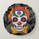 Evil Clown Skull Demon Round Throw Pillow Home Decor. Evil clown, skull and demon rolled into one for this evil horror creature. Great home decor or Halloween decor.