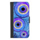 Protect your phone with powerful style! This iPhone wallet case features a bold and vibrant evil eye design in shades of blue, purple, and gold—perfect for warding off bad vibes while keeping your device safe. 🧿📱💙