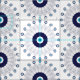 Stylish white fabric with an evil eye circular mandala pattern in Mediterranean blues