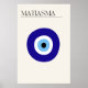 This eye-catching design features a traditional blue and white Evil Eye symbol, which has been used for centuries as a protective talisman against jealousy and ill will. Hang it in your living room, bedroom, or entryway to create a warm and welcoming atmosphere, while also bringing a sense of peace and protection to your space. The intricate details of the Evil Eye symbol are sure to spark conversation and add a touch of cultural charm to your decor. This Evil Eye poster also makes a great gift for anyone interested in spirituality, mysticism, or ancient traditions. Order yours today and bring a little bit of protectiveness into your life!