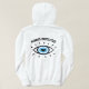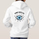 Evil eye spiritual aesthetic hoodie, by Lovely Hudoshians + Pretty Vocal Rixxi collab, inspired by the protection stone amulet, also known as Nazar Boncuk or “pearl of the look” used by many to repel negative energy, bad vibes, envy, jealousy, and bad luck karma.