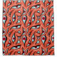 Evil eyes shower curtain with a pattern created from a vector illustration of abstract red eyes over intense orange background and wavy lines swirling around them.