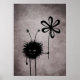 It's evil, but it's also kind of cute. And it loves flowers... loves eating them, in fact. It's the Evil Flower Bug. Funny and evil poster with a grinning cartoon creature with sharp teeth holding a flower on textured background.