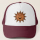 This awesome hat features a cartoon of an evil brown hedgehog curled up in a ball with sharp brown prickles surrounding it. It has demonic red eyes and a menacing black grin. This simple design will appeal to children and adults alike.