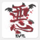 Evil Kanji Stickers. This is the Japanese kanji symbol for evil, and is written as "aku" in English. In Japanese stories, and other literature, this symbol is used to describe something extremely dark and sinister. The kanji for evil has a very distinct look to it, but I've added a tail, dark wings, and spiky horns so that it would be more recognizable at first glance.