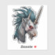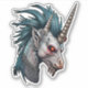 Introducing our fierce and unique digital illustration sticker featuring an evil punk unicorn. The illustration features an intimidating creature with a metal horn and two additional horns bolted to the sides of its head, a thick blue mane, an ear that has been partially ripped off and sewn back on, red eyes, and silver chains on its neck. The overall design is mean, scary, and ready for battle. This sticker is perfect for those who appreciate a darker and edgier side of fantasy and digital art. It will add a bold and unique touch to any surface and will be a great conversation starter. Show off your love for punk and fantasy with this one-of-a-kind digital illustration sticker.