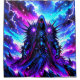 This shower curtain has an evil figure on it.