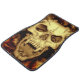 Evil Skull With Fangs Printed Vehicle Rear Floor Mat Set. This awesome set of rear floor mats features an evil looking skull with fangs. The entire graphic is engulfed in real looking fire.