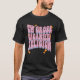 My 11 yo wore adult XL (5’7” 165#). The 8yo is small framed. She wore adult small and tied it in the back. Grandma wore adult large with long sleeve shirt underneath. Tall girl adult medium. Dark haired male adult large. Good quality dark Heather gray, Gildan brand shirt. -it was next up from basic choice and cost about $20 per shirt. Not too thick or thin. Washed and dried well, no major shrinkage. Not see-through. Can wear a bra under it fine. Screen print is just as shown and well done, front and back.