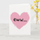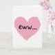 Designed with a big pink heart in the middle, this card keeps the focus on one simple image. The heart looks like it was painted with visible brush marks, giving it a rough, imperfect feel. Inside the heart, the text reads “eww...” in black, handwritten-style letters right at the center. The letters look casual and a little messy, which makes the message feel like a quick reaction. The background is off-white and looks a bit like textured paper, so the pink heart stands out right away. Even though hearts usually mean romance, this one adds a funny twist that can fit teasing couples or close friends 💘. It’s a light, cheeky way to say you care without being overly sweet 😘.