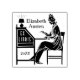 This personalized rubber stamp bookplate has a vintage stencil look. The silhouette of a woman sits at a writing desk with pen raised while a lamp shines next to her. The woman looks like she is from the 19th or early 20th century. The desk says, "Ex Libris," meaning "from the books / from the library of" in Latin. Use the template to add your name and the year - or delete whatever text you don't want on the book plate. See more designs for book lovers in the BookParadise store.