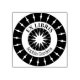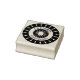 A round Ex Libris rubber stamp design with a multi-ray sunburst/starburst border and center with a 12 pointed star motif. Change the name to personalise.