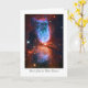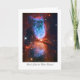 A gorgeous greetings card featuring a star forming region in Constellation Cygnus (The Swan). This Hubble image shows a dust-rich, interstellar gas cloud with a new-born star in the centre of the hour-glass shape. The glowing blue of the hydrogen in this nebula is due to the jets being emitted from the forming star as dust falls into into it and this causes the heating and turbulence of the hydrogen. The star, known as S106 IR, is reaching the end of its birth and will soon enter the much quieter period of adulthood known as the main stage.