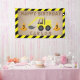 Construction theme with yellow excavator and orange cones with black and yellow stripe border.
