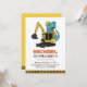 Excavator T-Rex Builder Construction Kids Birthday Invitation