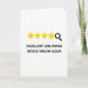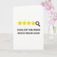 This adult card features a simple white background with a row of four yellow stars across the top. Where a fifth star would normally go, there’s a black magnifying glass icon, as if someone is taking a closer look before giving the final rating. The stars look like a classic review graphic, and the magnifying glass adds a funny twist that fits a modern romance theme. Below the icons, the card has the text “EXCELLENT GIRLFRIEND WOULD SMASH AGAIN.” The message is printed in black, all-caps block letters in a straightforward sans-serif style, centered under the stars. The contrast between the bright yellow stars and the plain background makes the joke easy to spot at a glance. It feels like a cheeky, affectionate nod to how people talk online, with a little extra love behind it