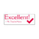 This positive rubber stamp design features the motivating feedback message "Excellent!" and a personalized teacher's name. It also features a decorative check mark icon. It could be used by a school teacher, educator, instructor, or tutor when marking assignments, to acknowledge that a student has done well.