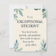 Exceptional Student is a heartfelt appreciation card designed for educators who want to recognize and celebrate student achievement. Featuring a soft botanical watercolor design with green leaves and subtle gold speckles on a warm beige background, this card delivers a message of encouragement and positivity. Its universal wording makes it suitable for students of all ages and backgrounds. Whether used in classrooms, graduation ceremonies, or personal notes of recognition, this elegant card helps teachers express gratitude and inspire continued growth.