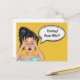 Easily customizable with your own text, your good news or exciting news. Change the background color and surprise your friends and family with your news. Maybe you are pregnant, building a house, moving or getting married. Pop art style girl with binoculars as symbol.