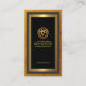 A simple artistic design of intertwining rectangular borders made from faux gold colors. At the top, you have your prestigious name which sits above an exquisite faux gold logo of a gold car tire rim which you can use. Just below this, in a black column, you have your job title and the contact details.