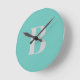 Exclusive Unique Light Teal Gray Monogram Initial Round Clock