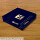 Enhance your financial advisory space with our Executive Company Monogram Glass Paperweight. The brushed gold monogram initial emblem, paired with your company information in classic golden typography, is showcased against the sleek navy blue background. This glass paperweight serves as both a practical desk accessory and a refined addition to your office decor.