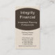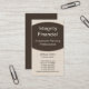 Professional Executive Curves business card design in espresso. This sleek and clean profile card is a great choice for someone interested in making a great first impression. A perfect choice for professionals in the financial sector such as investment planners, anaylsts, loan officers or insurance agents. To make this design your own, add your personal/business information into the fields provided. Fonts and text colors may be changed by clicking on the "Customize It!" button.