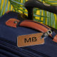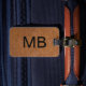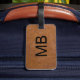 Monogram executive luggage tags with a digitally printed leather look background graphic and masculine monogram name initials to personalize instantly online. Designer for business travelers in high quality acrylic on both sides.