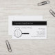 Employment agency and executive search business cards with great design that includes a black and white company name emblem and magnifying glass with a man and woman in it, all printed on the front with text layout you can personalize to suit your business. Designed for a job agency, human resources service, or executive search.
