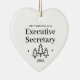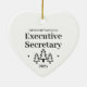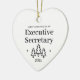 First Christmas as an executive secretary heart ornament. Elegant porcelain ceramic holiday ornaments in white with black lettering. Featuring Christmas trees and stars.