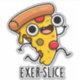 Exer-slice Funny Pizza Pun features a slice of pizza jogging because he loves to exercise! Perfect Puns gift for family and friends who love funny pizza puns.