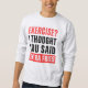 Exercise? I Thought You Said Extra Fries Funny Sweatshirt. Exercise? I Thought You Said Extra Fries - Funny Saying Quote Sweatshirt. If your idea of a workout involves lifting forks rather than dumbbells and you consider a balanced meal to be one with fries on both sides, this hilarious design is a must-have. My "Exercise? I Thought You Said Extra Fries" design is the perfect way to declare your love for cheat days.