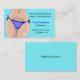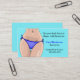 Stylish all purpose exercise instructor's business card, done in aqua, with graphics of a woman's mid section wearing a bikini bottom. Text in blue and black, on the front and back of the card, is fully customizable to read what ever you need. Great card for yoga, jazzercise, dancing exercise, Zumba, any fitness style program you teach.