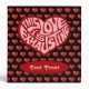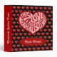 "This love is exhausting". Vector text shaped like heart with customizable color. Front, back and spine custom text fields.