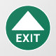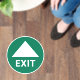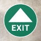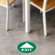 Simple green circle floor sign featuring a directional arrow and "Exit" in bold, easy to read white typography.