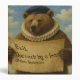 A bear in a Shakespeare neck ruff and hat, it is holding a scroll that quotes William Shakespeare from A Winter's Tale "Exit, pursued by a bear" in this generative content funny art piece.