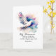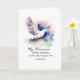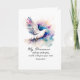 Christian greeting card with inspirational quote scripture depicts a beautiful white dove flying through the sky, its wings adorned with blue and lavender splashes of paint. It features an encouraging Bible Verse Exodus 33:14, “My Presence will go with you, and I will give you rest.” The greeting, prayer can be personalized or deleted for a hand written message.