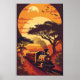 Immerse yourself in the beauty of the African savannah with this stunning poster featuring lions, zebras, giraffes, and more on a whimsical train adventure. Perfect for animal lovers and safari enthusiasts, this vibrant artwork will add a touch of exotic charm to any room. Ideal for home decor, classrooms, or gifting.