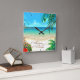 This serene and peaceful wall clock depicts a beautiful tropical beach scene with palm leaves, tropical bird of paradise flowers and a small grass hut in the distance. To have me draw your names in the sand, please contact me BEFORE YOU PLACE YOUR ORDER or use the CUSTOMIZE IT button to delete the names altogether and personalize with other text. This design works well on both square & round shapes. Matching wedding invitations, envelopes, stickers, favor bags and more are available! For special requests or other items featuring this design, contact: cheryl@cheryldanielsart.com. "Exotic Beach" by Cheryl Daniels © 2015.