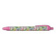 Very nice blue, or black ink pen. I will be buying more. The print was fine. I can easily see the print. The flowers look great.