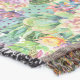 A quality printed throw has its advantages. This is a much finer weave throw than its loopier cousins, and though lighter, it is worth the investment for custom room accessorizing. The back is much prettier than the typical brown, and the fringe on the long sides very vivid, the selvage nicely done. Before photographing, I washed the throw in cold water, delicate, with a thicker woven throw the same size. On tumble dry low, this throw was dry in half the time as the other. This is a very practical quality if you use throws for furniture covers or to wrap up in frequently. The sleekness of the fabric makes it a great layer for accenting or protecting without the feeling of sitting on too much stuff. Perfect for napping or when you feel a light chill coming on. The color printing is beautiful and on this fabric, matched the design and color of my Photoshop image. This is an advantage for blending room fabrics and colors. The fringe on the short sides prints the colors from the design image and therefore varies from the side fringe. I streaked a white fractal line through the plaid pattern to give the illusion of weaving. This printed as crisp as an illusory thread, and put some white in the short side fringe, showing another advantage of print vs loomed- for artistic purposes, line lines, detail, and color integrity can be planned and preserved. My loomed throws have color limitations and more of a needlepoint texture. Print throws reproduce an exact image. The throw felt a little stiff straight out of the package, but this went away in the first delicate wash. Of course I searched the wash water for ink or bleeding and there was none.