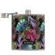 In beautiful island style, this flask design features a repeating pattern of lush tropical leaves in vibrant colors of fuchsia, pink, purple and green. A thin wide frame surrounds your name or other desired text. Take it to the beach, on a cruise, camping, tailgating, or most any adventure you can imagine. It makes a wonderful gift for someone special.